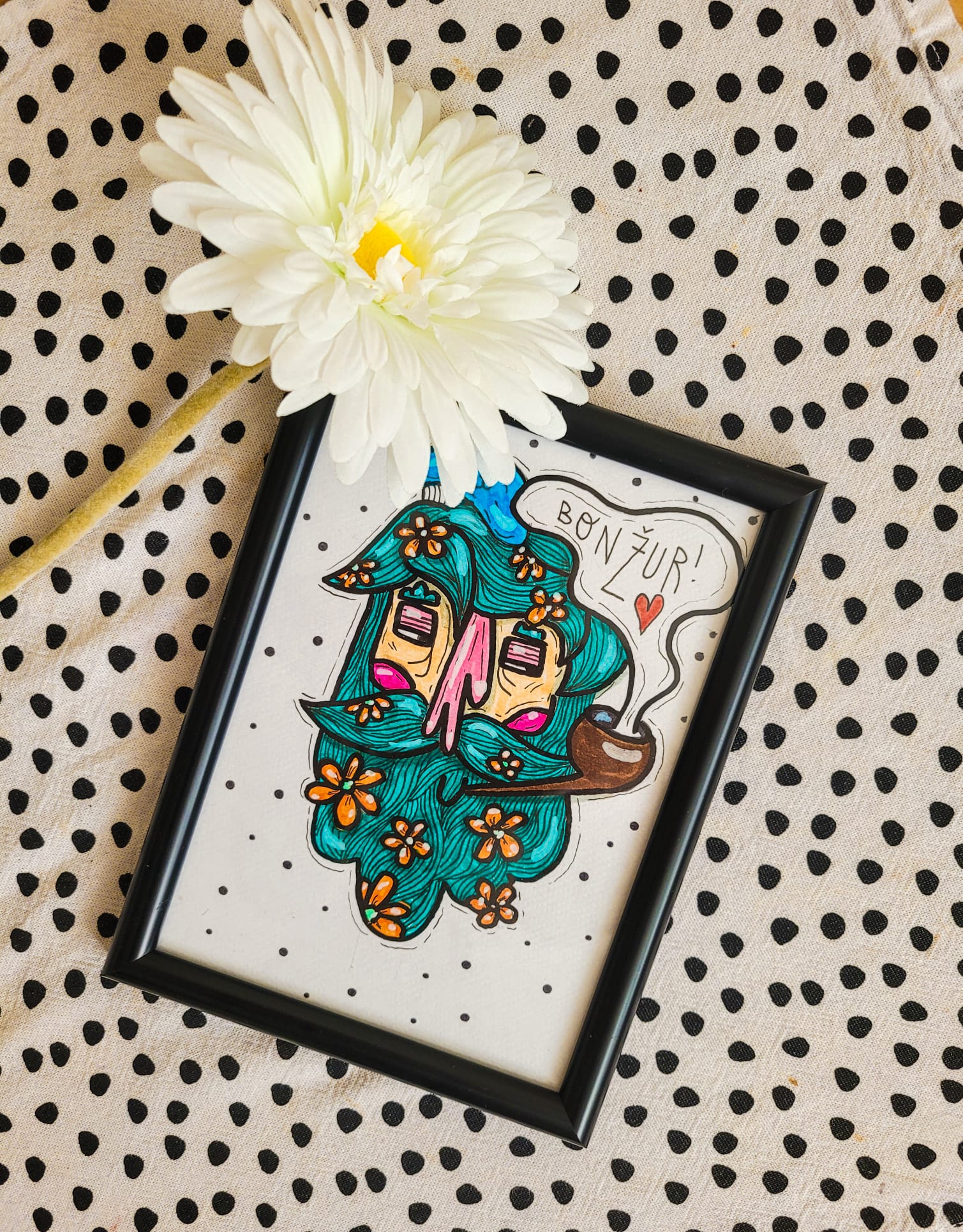 Rekla bih da jesam. Osim crtanja, uživam i u vezenju, izradjivanju kolaža, čitanju, kuhanju, putovanjima i modi. Isto tako, jako guštam u malim životnim radostima. Ponekad ne mogu zamisliti ništa ljepše od kave i smijanja na suncu s meni dragim ljudima. Isto tako, jako volim životinje, pogotovo mog psa Čoriza, koji je najbolji pasić na svijetu 🙂